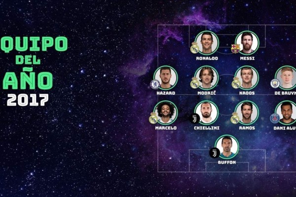 Once nombres estelares componen el Equipo del Año 2017 de los usuarios de UEFA.com. Se han recogido un total de 8 millones 779 mil 639 votos de aficionados de todo el mundo, que han seleccionado a sus jugadores favoritos de los últimos 12 meses.