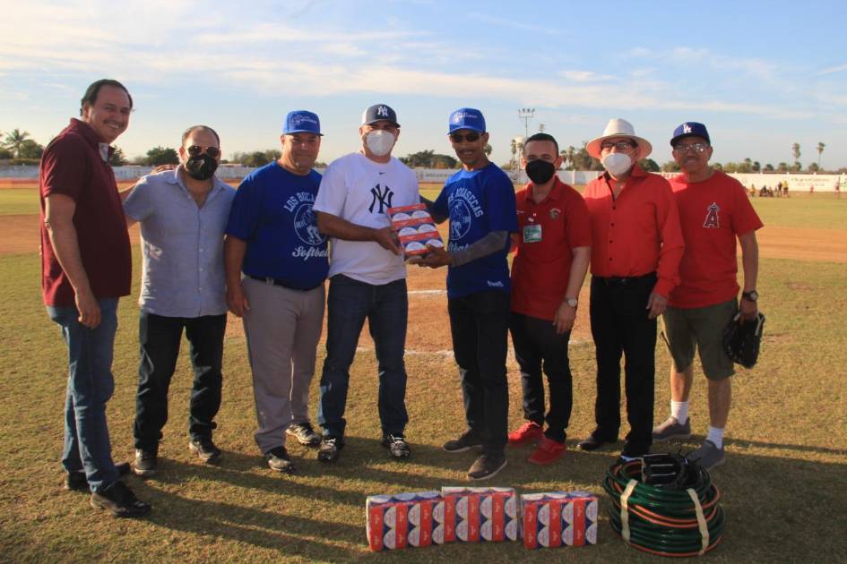 El munícipe dijo lo anterior durante un sencillo acto que llevó a cabo en las instalaciones del Polideportivo, en coordinación con el titular del Imden, Marco Antonio García García, para hacer entrega de material deportivo a integrantes de la Liga Municipal de Futbol Femenil Sabatina, deportistas de la Liga de Softbol Inter Empleados del Municipio de Navolato, así como a los beisbolistas del Ejido Caimancito, a quienes apoyó como material para el mantenimiento del campo.