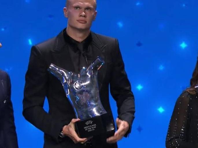 El noruego Erling Haaland fue designado como el Jugador del Año de la UEFA, esto venciendo en la terna final a su compañero del Manchester City, Kevin De Bruyne, y al argentino Lionel Messi.