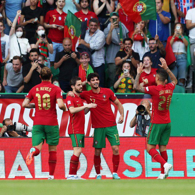 Desde el comienzo Portugal llevó el peso del encuentro, pero los checos tuvieron alguna oportunidad a la contra. Sin embargo, el combinado luso sobrepasada la media hora de juego dejó el partido muy encarrilado con los goles (ambos con disparos desde dentro del área) de João Cancelo y Gonçalo Guedes.
