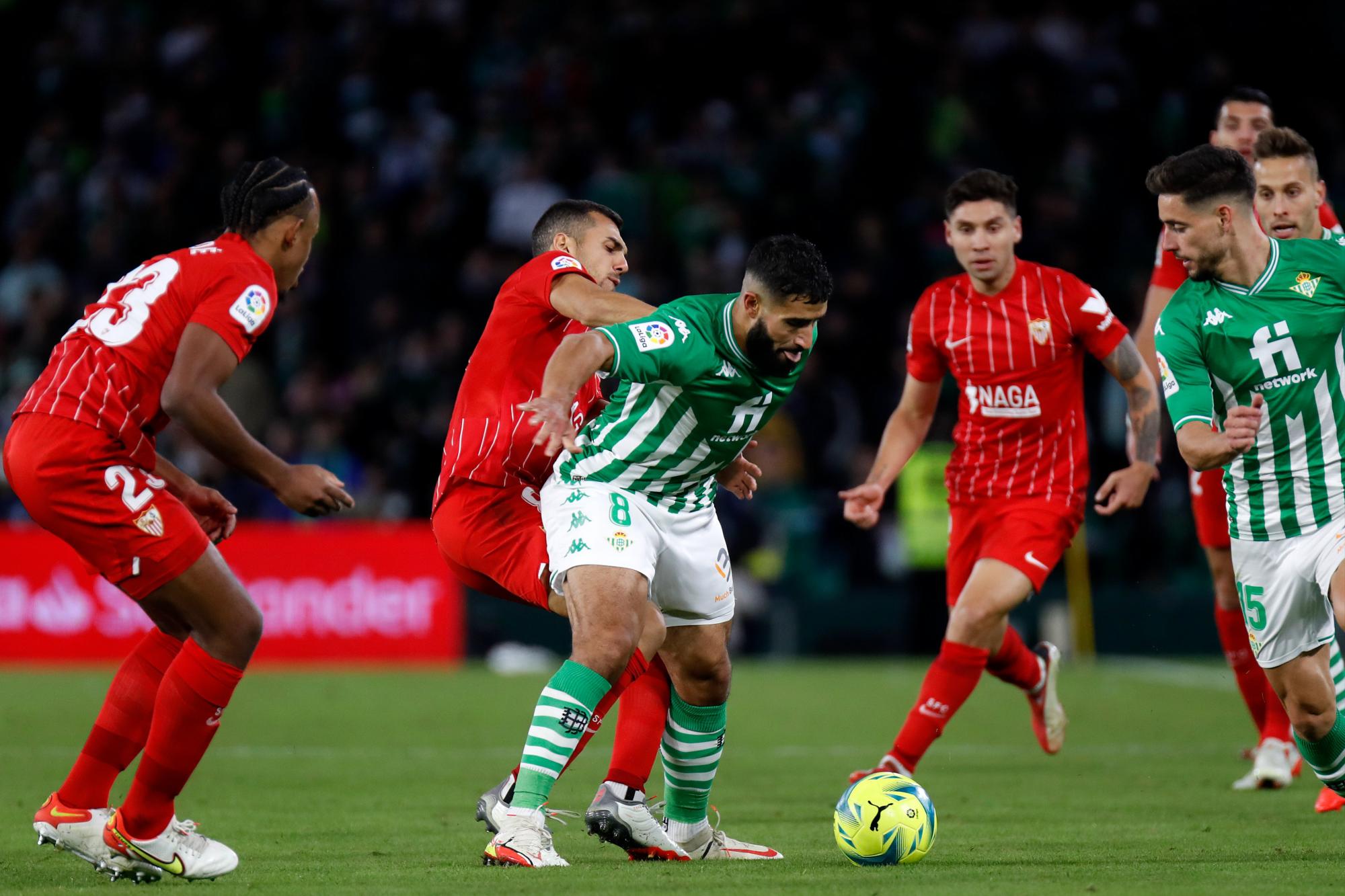 Lo más importante del primer periodo llegó muy poco antes de que concluyera, cuando el Betis se quedó con diez jugadores para la segunda mitad después de que el árbitro, que ya le había enseñado una tarjeta a Guido Rodríguez a los diez minutos por falta a Rakitic, le mostró la segunda en el 45 por hacerle otra a Rafa Mir cuando éste encaraba el área local tras un robo de balón.