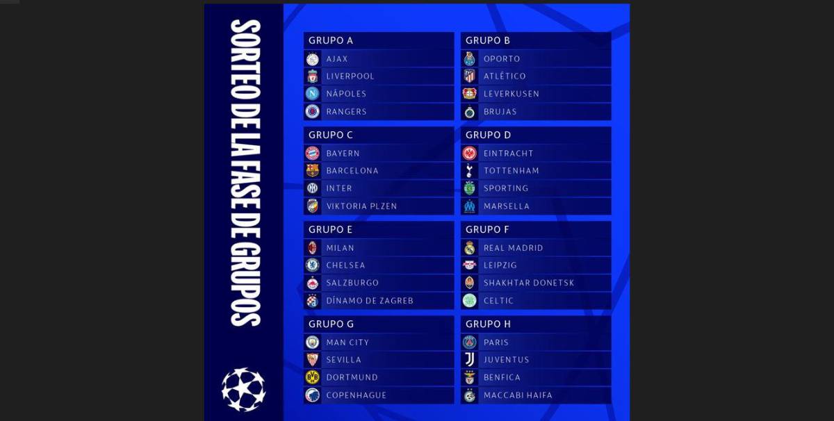El Ajax (Países Bajos) de Edson Álvarez y Jorge Sánchez encabeza el Grupo A, donde estará acompañado del Liverpool (Inglaterra), el Napoli (Italia) de Hirving Lozano y el Rangers (Escocia), que precisamente eliminó el miércoles al PSV del sinaloense Érick Gutiérrez.
