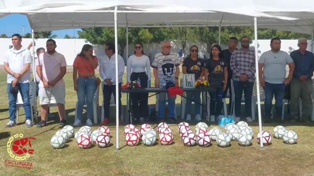 En el evento también estuvieron presentes el gerente de la Jumapae, Roberto Simental; el presidente de la Liga de Primera Fuerza, Rubén Aldecoa; el promotor de futbol en Escuinapa, Benito Gutiérrez; la directora de Atención Ciudadana, Kimberly Grave; el Secretario de Presidencia, Roberto Omaña; y la regidora presidenta de la comisión del Deporte.