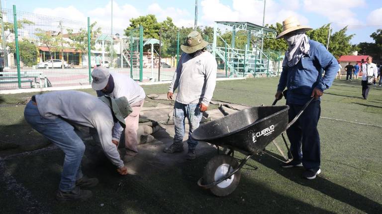 Los trabajos incluyeron también la construcción de bancas para los jugadores y un murete eléctrico, como parte de las acciones permanentes de mejoramiento de los espacios deportivos del municipio.