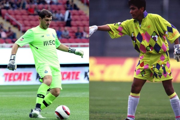 Después, el guardameta español compartió también vía Twitter tres fotos de los porteros que nombró y usaban camisetas cortas, incluida la de Jorge Campos, quien vestía su tradicional uniforme de colores.