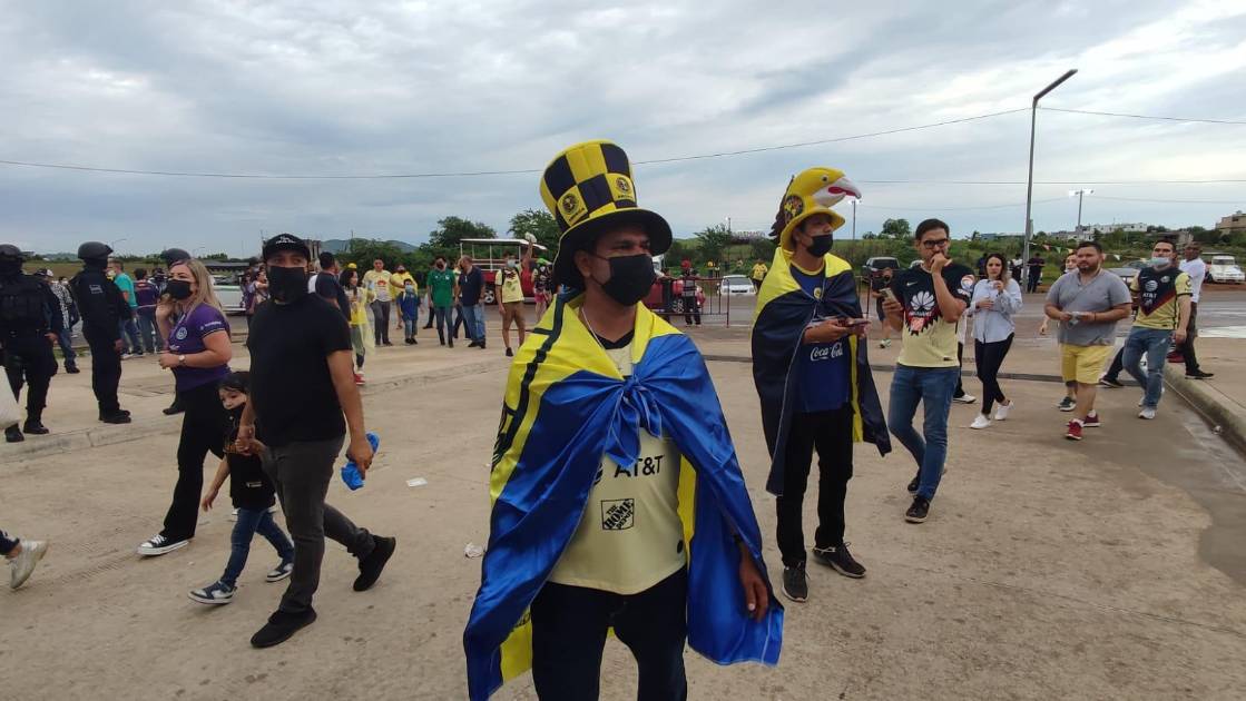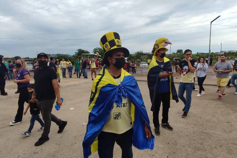 Afuera lucía un mayor número de seguidores de Club América, que destacaban sobre los Cañoneros, quienes aunque también contaban con varios vestidos con su playera de apoyo, los visitantes rebasaban con sus jerseys a los locales.