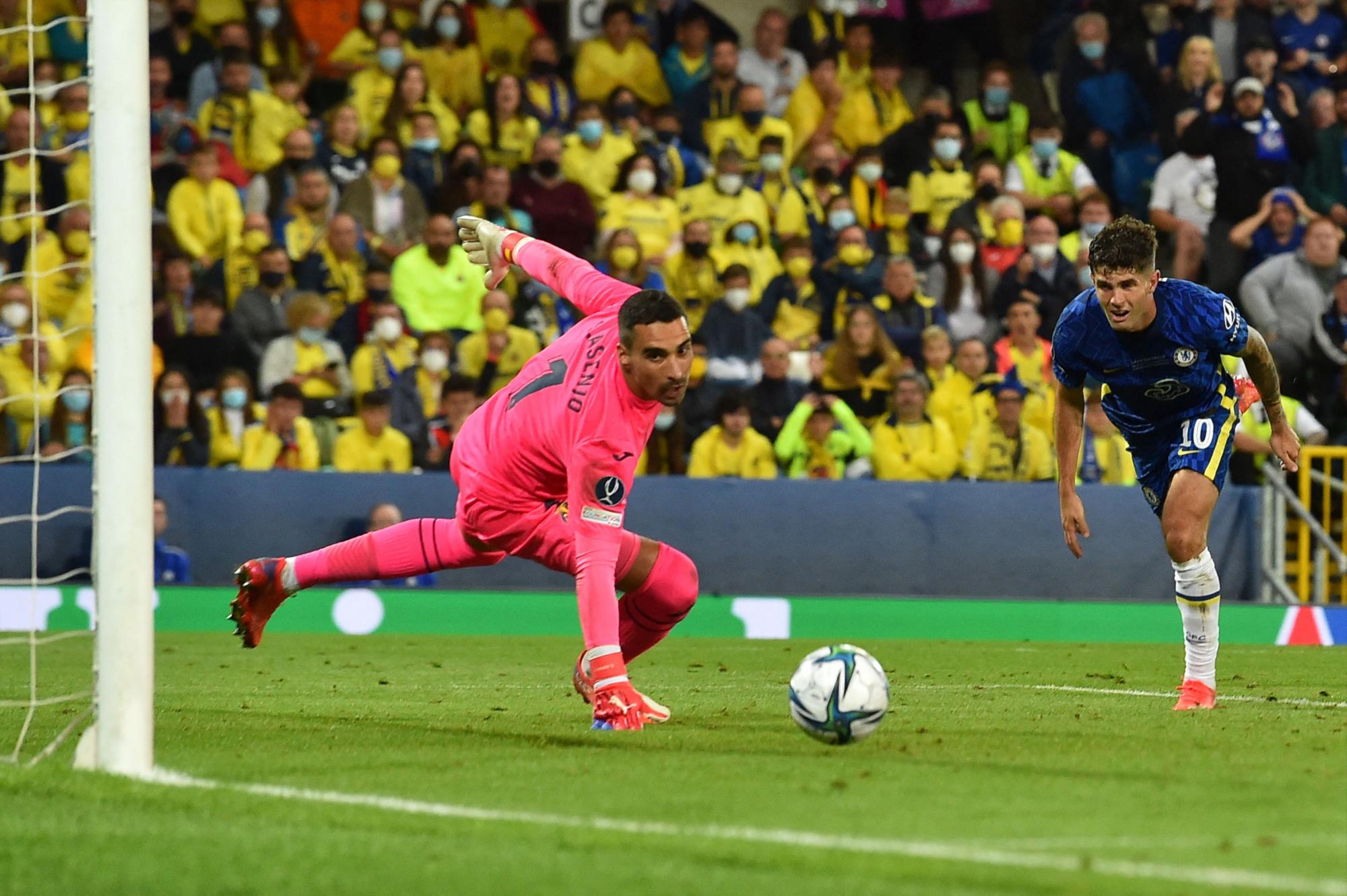 El vigente campeón de Champions salió en tromba y en el minuto siete obligó a Asenjo a realizar una gran parada tras un estupendo remate de Werner. Seguidamente, Kanté, con un disparo ajustado, estuvo cerca de batir al meta del Villarreal. El ganador de la Europa League, que no tenía la pelota, sufría mucho ante el ímpetu del Chelsea.