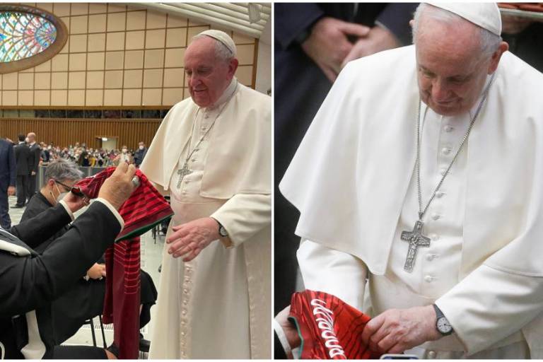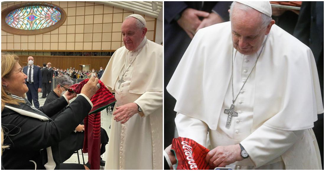 La madre de Cristiano Ronaldo le regala una playera del Portugal al Papa Francisco