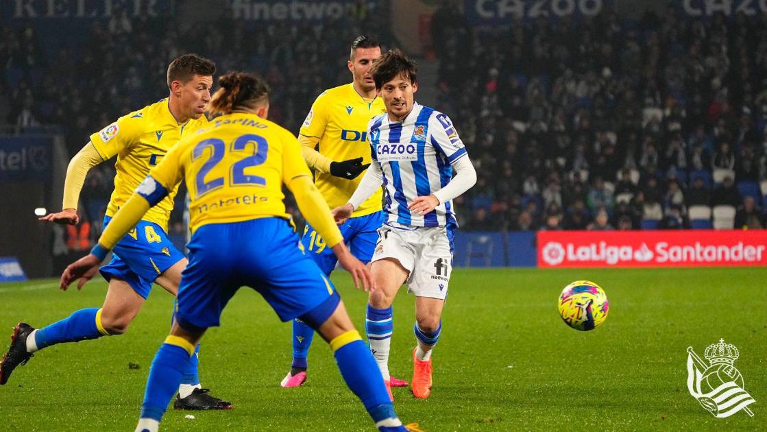 Los donostiarras dieron continuidad en la primera mitad a sus deficientes actuaciones de los últimos encuentros, su juego fue previsible sin un Silva que esperaba su ocasión en el banquillo tras un mes lesionado y el Cádiz vivió un primer tiempo muy plácido.