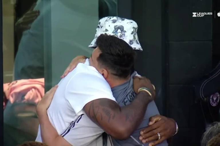 Messi, que inició como suplente en su primer partido con el equipo de Florida (frente al Cruz Azul en la Leagues Cup), se fundió en un gran y afectuoso abrazo con LeBron James, estrella de Los Ángeles Lakers, cuando salió del túnel de vestuarios para sentarse en el banquillo.