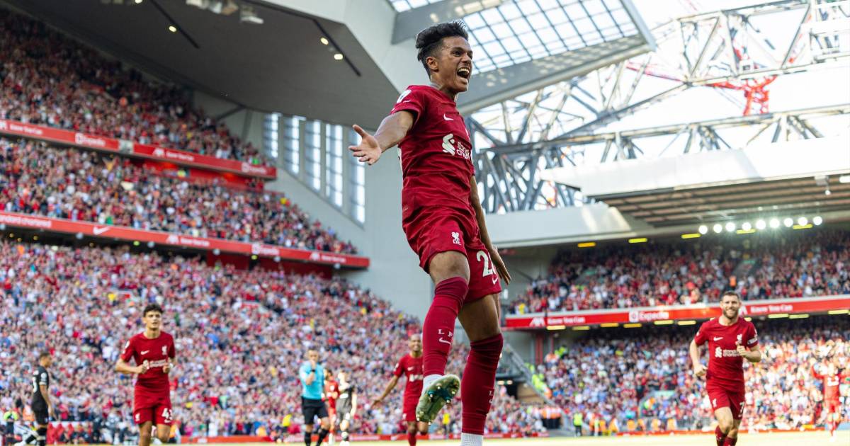 Fabio Carvalho reclamó su primer gol para el club cuando remató de volea y Díaz cabeceó el noveno y último gol del Liverpool antes de la conclusión para igualar el récord de victorias de la división.