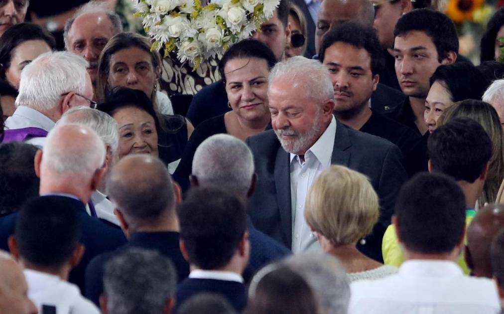 Trajeado y acompañado de la primera dama, Rosângela “Janja” da Silva, el antiguo metalúrgico entró al velatorio, donde esperaban familiares y amigos, y mientras transitaban por un costado de la carpa aficionados brasileños.