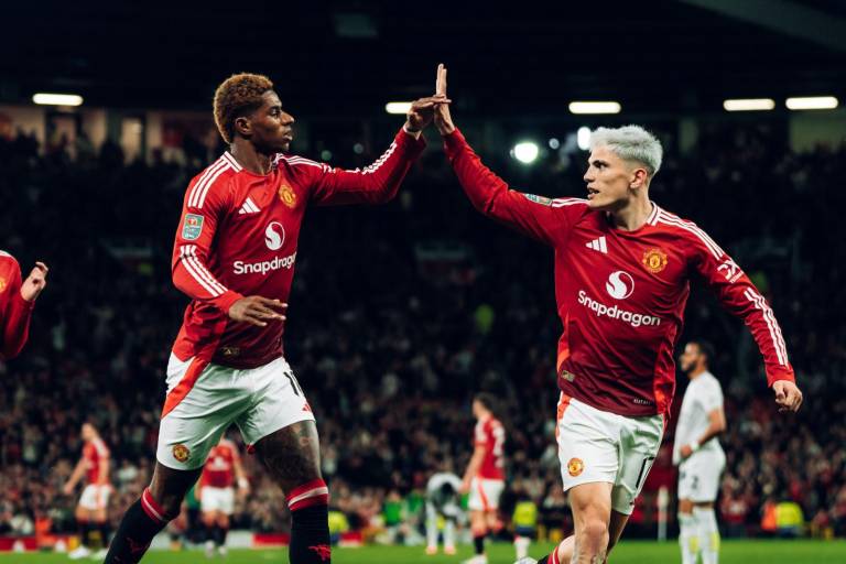 Rashford adelantó al United después de regatear a Marc Roberts a los 16 minutos. Antony duplicó la ventaja al convertir de penal a los 35.