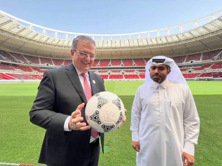 Por invitación del Gobierno qatarí, el canciller Ebrard visitó el estadio de futbol Ahmed bin Ali, también conocido como el “Estadio Mexicano”.