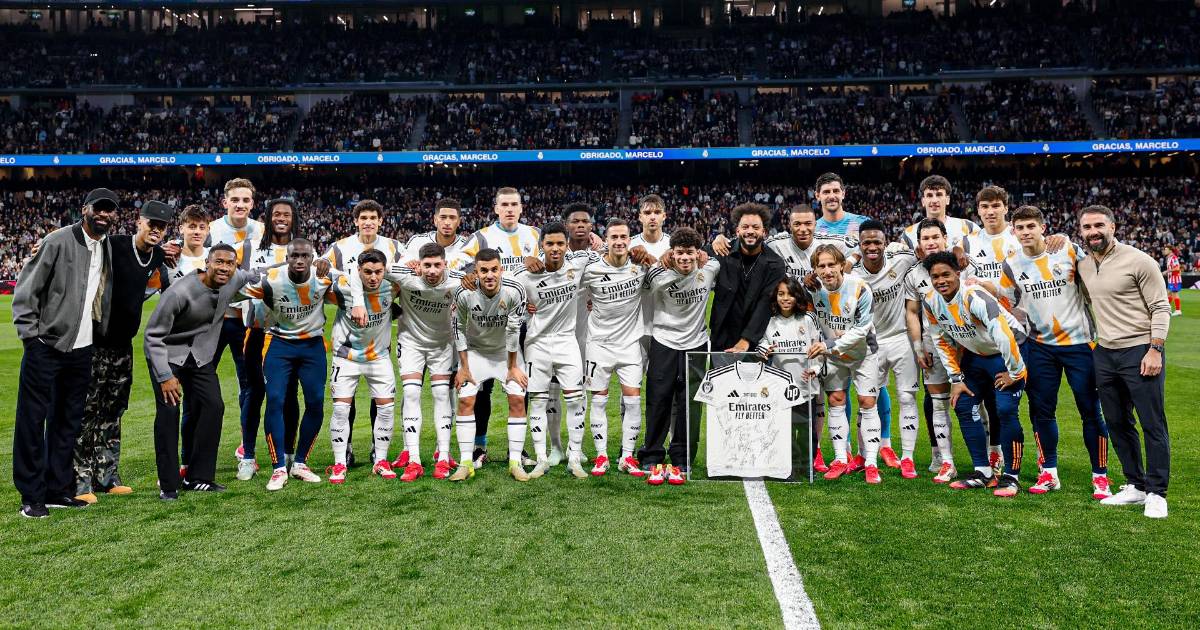 En la previa del derbi ante el Atlético de Madrid en el Bernabéu, el estadio estalló en ovaciones al verlo ingresar al campo tras la entrega del premio a Kylian Mbappé como mejor jugador del mes de enero. Agradecido, Marcelo, acompañado de sus hijos Enzo y Liam, recibió una camiseta enmarcada firmada por todo el plantel actual, de manos de Luka Modric, a quien rindió homenaje con una reverencia.