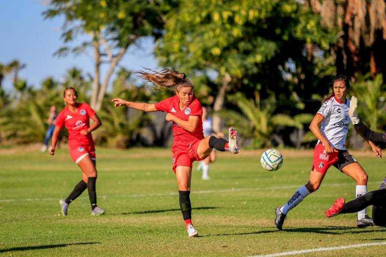 MAZATLÁN._ Mazatlán FC disputó su segundo encuentro de preparación de cara al torneo de Clausura 2023 de la Liga MX Femenil frente a las rojinegras del Atlas, en la cancha 1 del complejo Estrella del Mar, en Mazatlán.