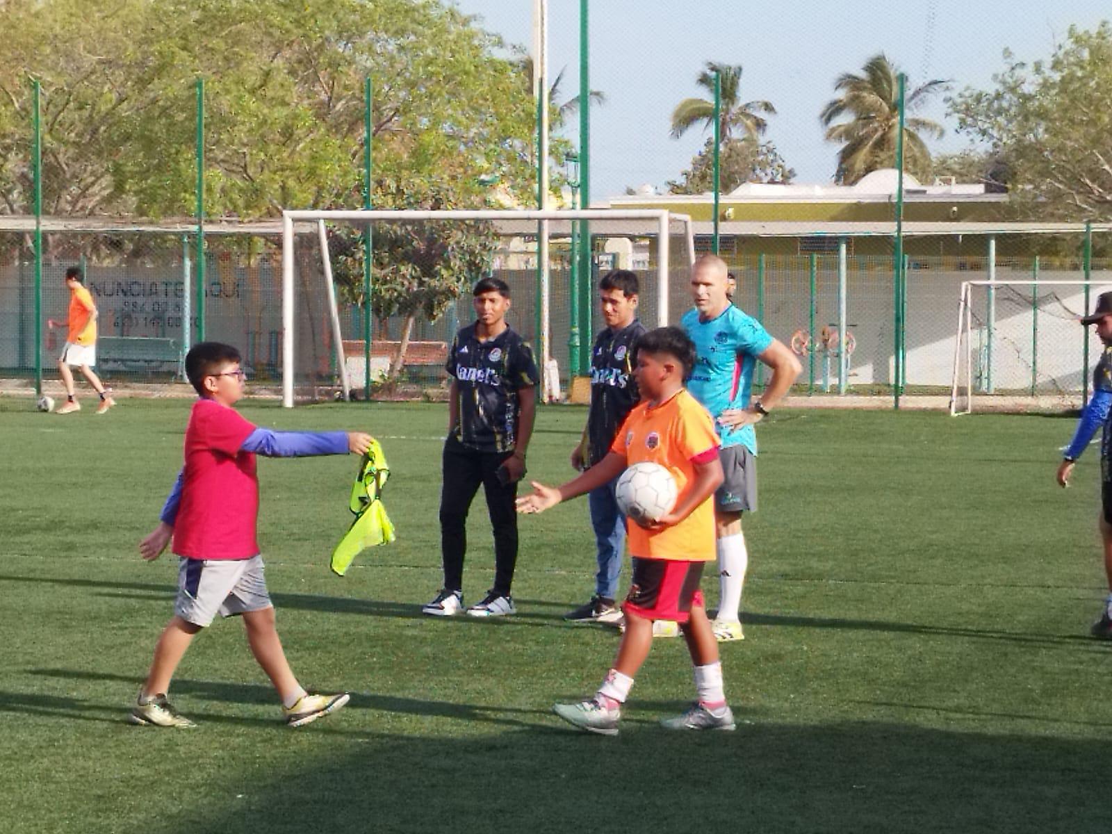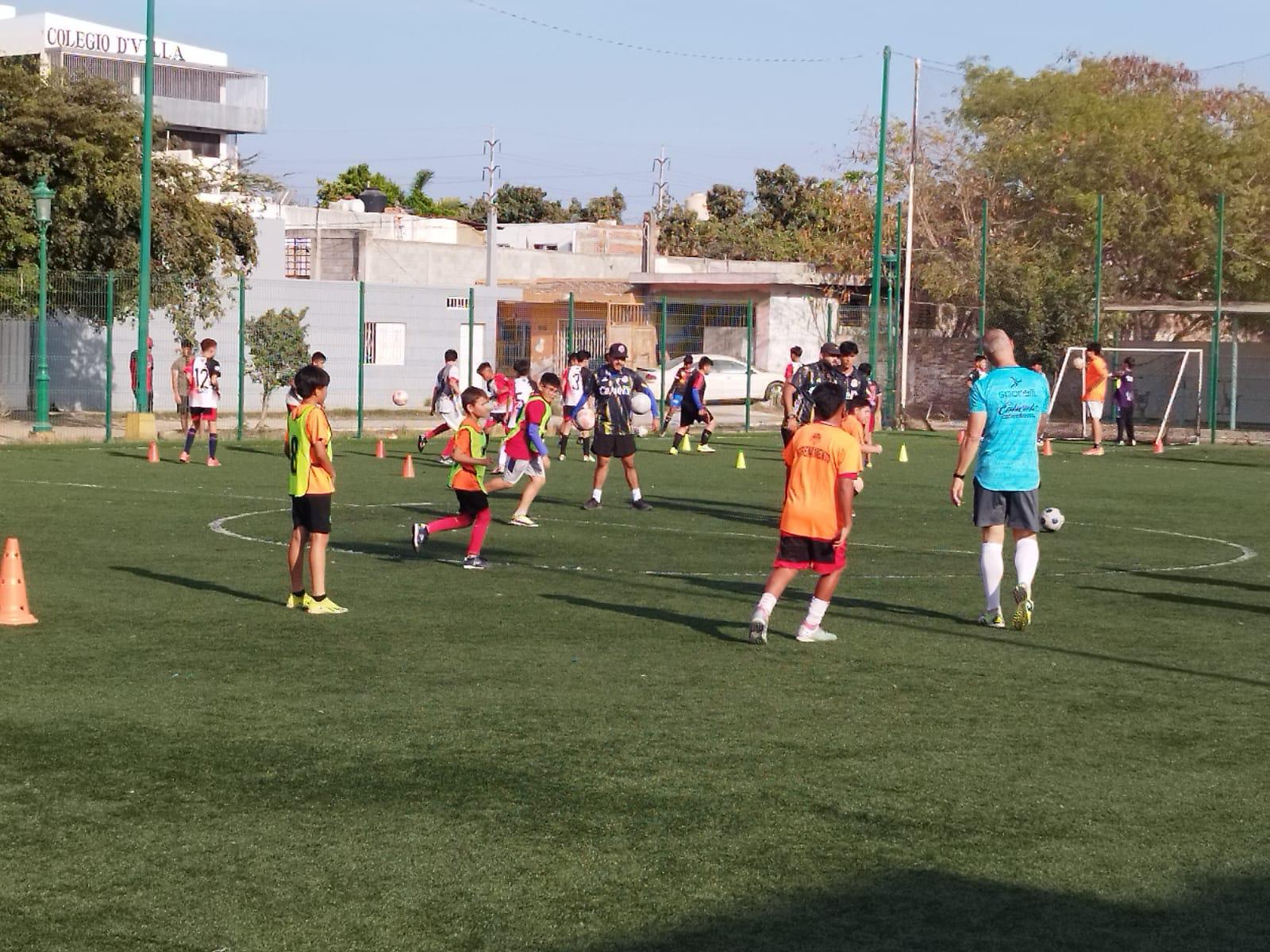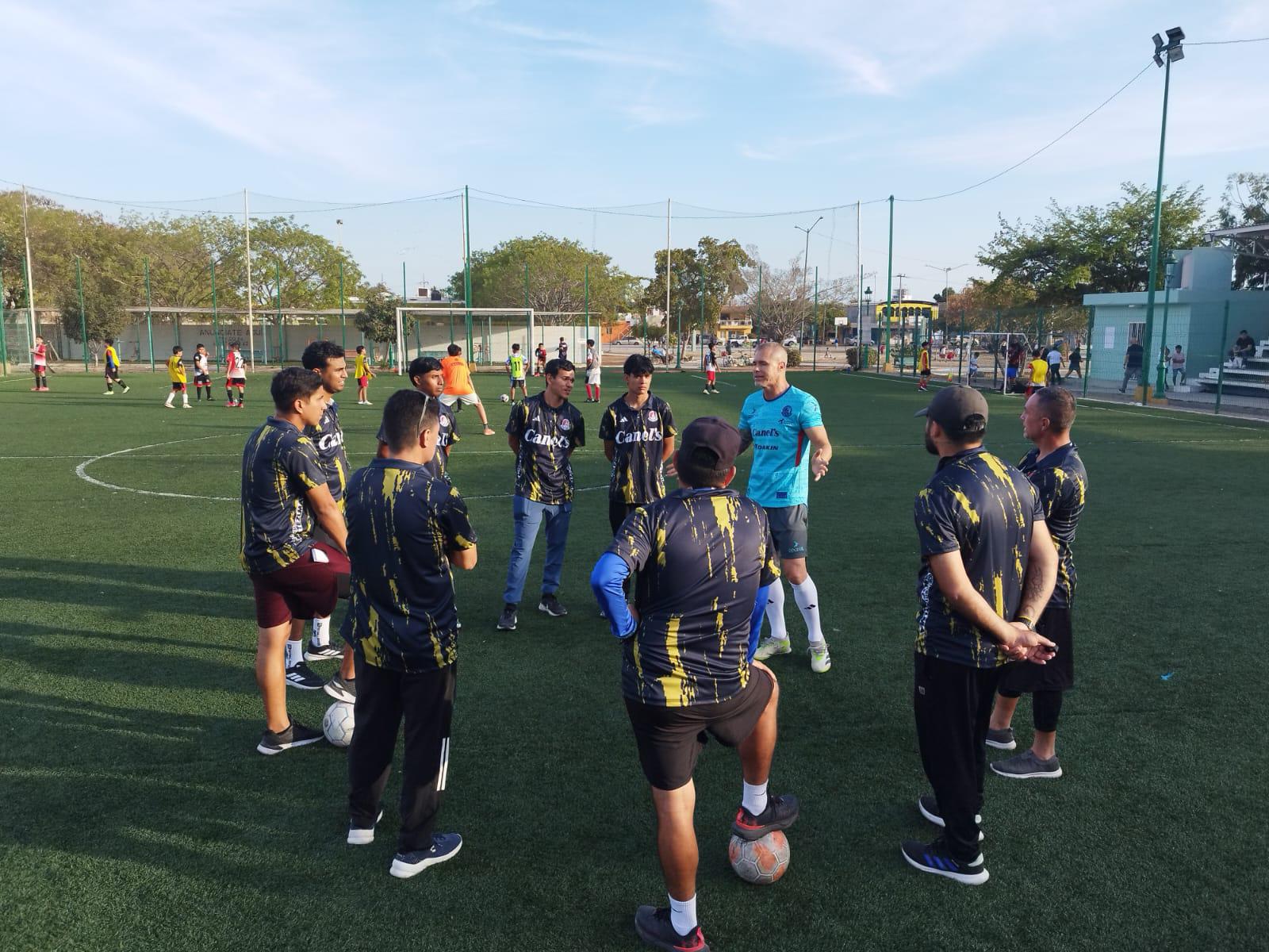 MAZATLÁN._ Directamente desde Madrid, España, Ángel Díaz Barrachina encabezó una capacitación y entrenamiento deportivo a la franquicia mazatleca de Atlético de San Luis, ubicada en la cancha de la Colonia Francisco Villa, a un costado de la Parroquia San Juan Apóstol Evangelista.