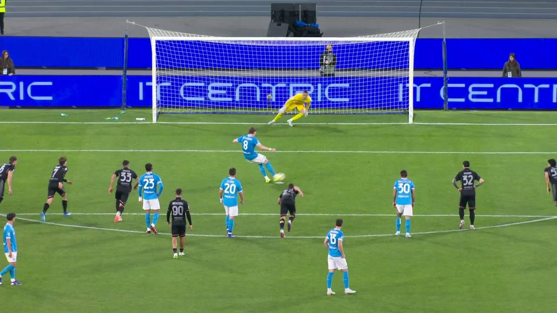 El partido se abrió muy temprano: al minuto 3, Scott McTominay marcó tras asistencia de Kevin De Bruyne, quien firmó su primer pase de gol en Italia desde su llegada en verano. Antes del descanso, un autogol de Filippo Terracciano y un tanto del propio De Bruyne pusieron el marcador 3-0.