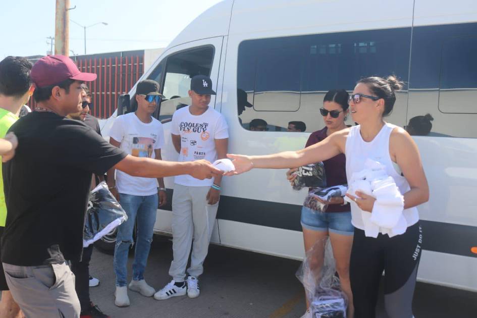 La directora del Imdem, Fabiola Judith Verde Rosas, acompañada de Marlen Hernández, integrante de la coordinación de Ligas y Clubes, entregó uniformes y dio la despedida a los jóvenes futbolistas.