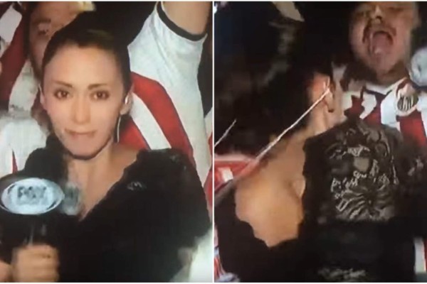 Las imágenes se transmitieron en vivo para todo México y se pudo ver el momento en que uno de los aficionados se acercó hacia la cronista deliberadamente. Al percatarse, la mujer se dio vuelta y lo golpeó con el micrófono.