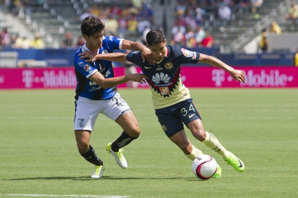 Tras haber merodeado sobre la cabaña del argentino Agustín Marchesin, los dirigidos por Jaime Lozano encontraron un penalti al minuto 12 de tiempo corrido; Emanuel Villa se redimió y sacudió las redes americanistas. El 1-0 se cantaba en el StubHub de Carson, California. Los minutos restantes del primer lapso se fueron entre la comodidad de Querétaro en la cancha y la poca presencia de las Águilas en el campo.