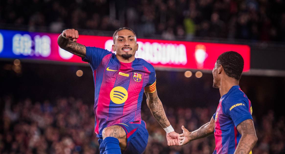 Raphinha firma doblete y mantiene al Barcelona líder de LaLiga