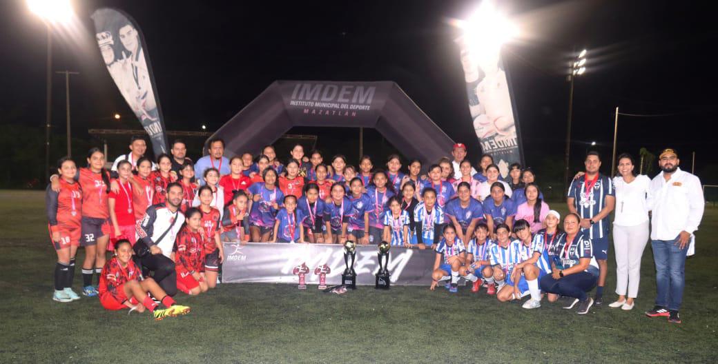 Rayaditas y Leonas Piña alzaron la copa que entregó la directora del Instituto Municipal del Deporte Mazatlán, Fabiola Judith Verde Rosas, quien felicitó a las campeonas de la categoría Infantil, Rayaditas, así como a las monarcas de la división Juvenil, Leonas Piña; las primeras tras vencer a Dragonas Muralla 5 goles a 2, y las segundas, luego de doblegar 1-0 a Dragonas Muralla.