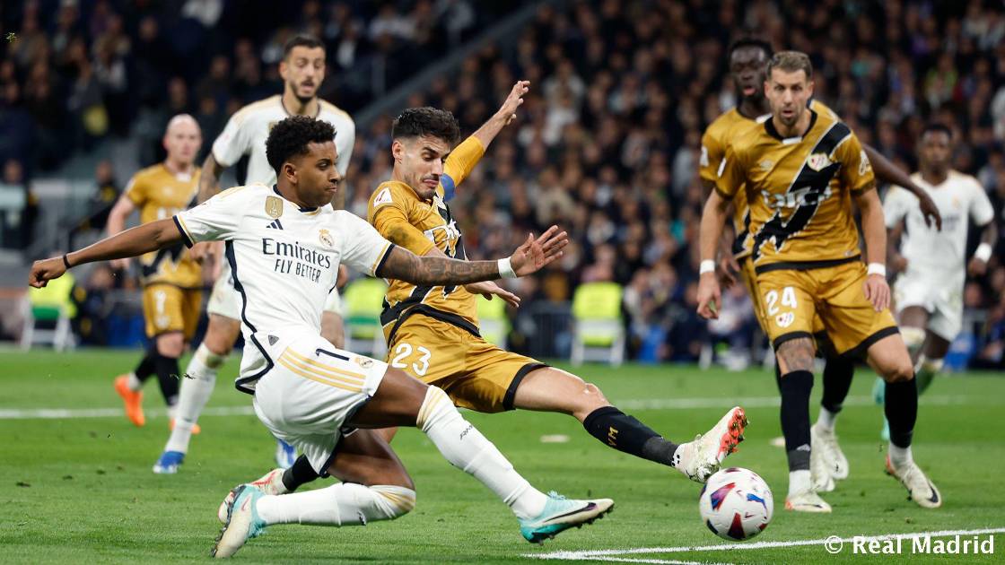 Cinco minutos después Carvajal metió un centro raso desde la derecha, Rodrygo disparó cruzado y el balón se fue rozando el palo de la portería del Rayo.