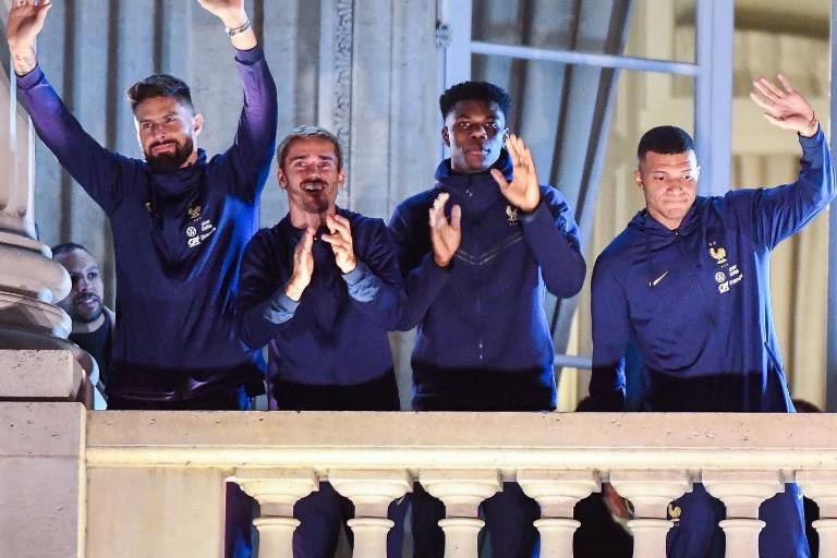 En el balcón del hotel Crillon, los futbolistas encabezados por Kylian Mbappé y Antoine Griezmann aparecieron para saludar a los numerosos aficionados que ondeaban banderas de Francia y proclamaban su agradecimiento a Les Bleus, que cerca se quedaron del bicampeonato, algo inédito en Mundiales desde 1958 y 1962 con Brasil.