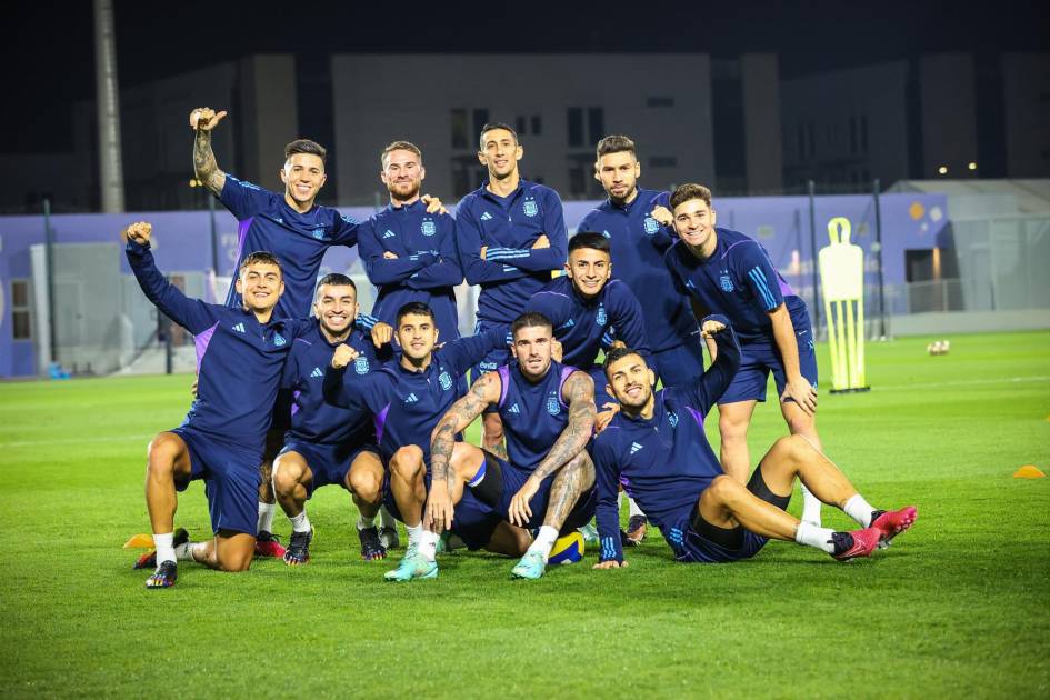 “Sí es verdad que tenemos que valorar la disponibilidad de cuántos minutos de cada uno. Lo veremos entre hoy y mañana, pero entiendo que están en condiciones”, abundó el técnico, que ultimó por la tarde la preparación de su equipo en las instalaciones de la Universidad de Qatar, con Di María y De Paul dentro de la normalidad, al mismo ritmo de sus compañeros, según los primeros 15 minutos de la sesión abiertos a la prensa, en los que Alejandro ‘Papu’ Gómez se ejercitó al margen.