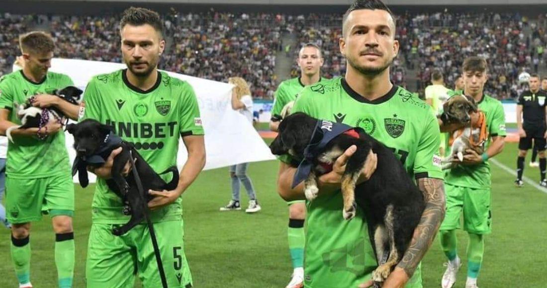 El pasado fin de semana durante el partido más importante del país, los jugadores del Dinamo aparecieron en la cancha con varios perros en brazos, pertenecientes a la perrera municipal de Branesti.