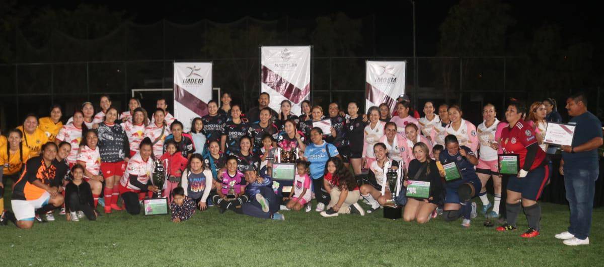 MAZATLÁN._ Después de una emocionante final que se definió en penaltis entre Halconas y Reggae Moms, a favor de las segundas, el Instituto Municipal del Deporte llevó a cabo la premiación del Torneo Mamis Fut, organizado en la cancha de pasto sintético del Fraccionamiento Esmeralda.