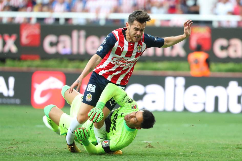 La jugada que dejó fuera al medio ofensivo del Rebaño se dio al minuto 28 del primer tiempo en el Akron, cuando al recibir un gran pase de Roberto Alvarado tuvo un mano a mano con el portero Alfredo Talavera, quien logró despejar el balón, pero en la acción terminó llevándose a Angulo.
