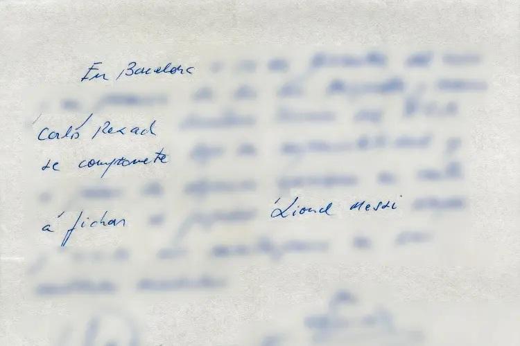 “En Barcelona, a 14 de diciembre del 2000 y en presencia de los Srs. Minguella y Horacio, Carles Rexach, secretario técnico del FC Barcelona, se compromete bajo su responsabilidad y a pesar de algunas opiniones en contra a fichar al jugador Lionel Messi siempre y cuando nos mantengamos en las cantidades acordadas”, decía la servilleta.