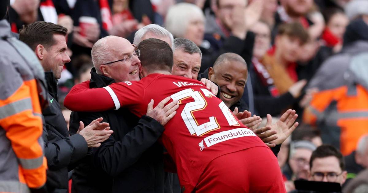 Así que este sábado, se vio a Sven-Goran Eriksson cumplir su deseo de dirigir un equipo de los Reds (el sueco era parte de un banquillo que también incluía a John Aldridge, John Barnes e Ian Rush) y recibir una conmovedora recepción por parte de la multitud.