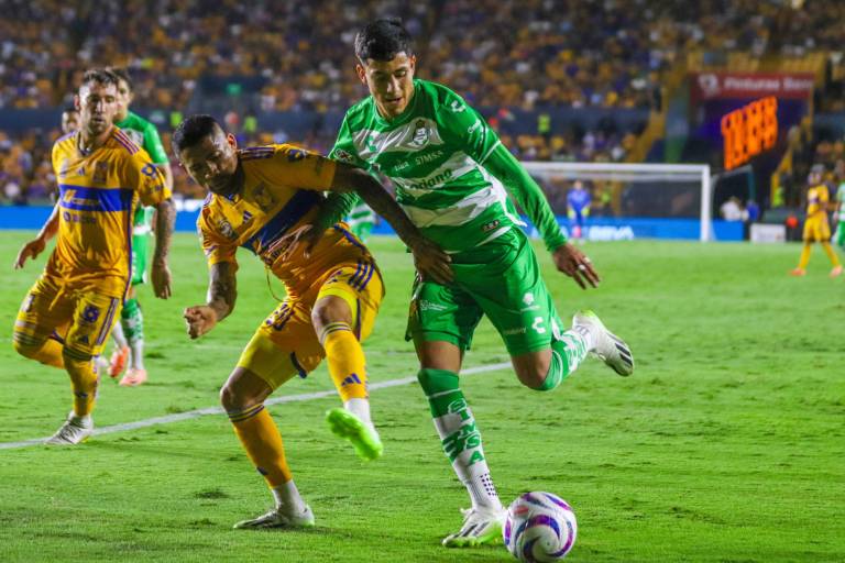 SAN NICOLÁS DE LOS GARZA._ Los Tigres de la UANL sacaron las garras en su casa y con su gente para lograr remontar con un increíble doblete un partido que se veía dominado por Santos.