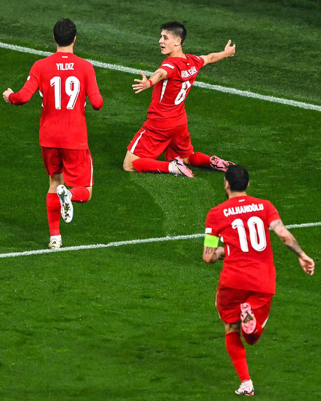 Lanzado de rodillas en la celebración, a sus 19 años, tras una temporada de recorrido con el Real Madrid tan corta como productiva, con apenas seis encuentros y dos titularidades con su selección hasta la convocatoria para Alemania 2024, salió desde el principio en toda una Eurocopa, seguro como está su técnico de la diferencia que puede marcar su sola presencia sobre el terreno, mientras se traza el cambio generacional que expresa cada golpeo a balón parado: él y Hakan Calhanoglu, juntos, en cada lanzamiento. También abrazados en el gol.