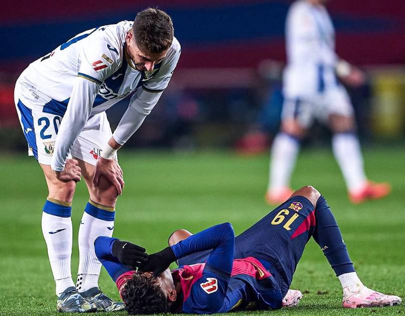 Yamal sufrió “un traumatismo en el tobillo derecho durante el partido de ayer ante el CD Leganés”, anunció el equipo catalán en un comunicado difundido en las redes sociales, al día siguiente de la derrota en el partido de LaLiga.