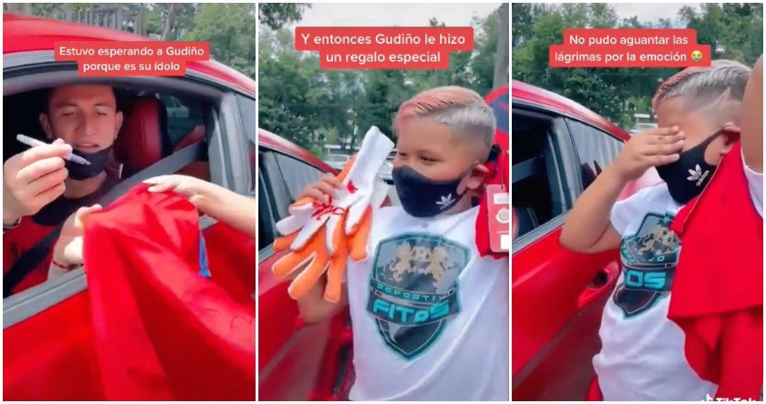 El gesto del niño fue respondido por Gudiño que sin pensarlo también decidió recompensar el detalle regalándole unos guantes al pequeño que provocó el llanto del menor de felicidad.