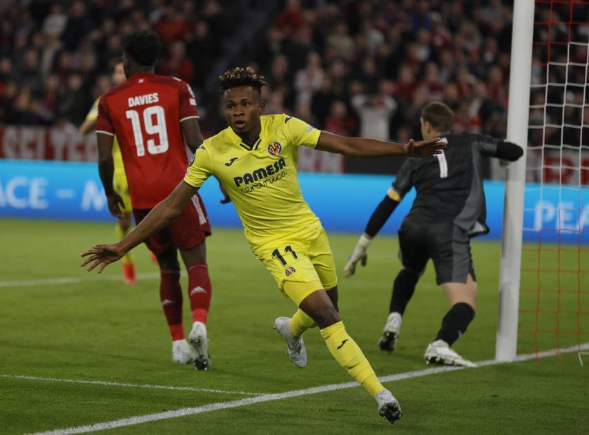Samuel Chukwueze del Villarreal festeja en la cancha del Bayern EFE