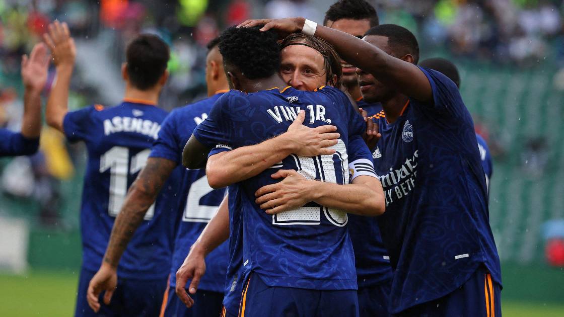 Los visitantes se fueron al frente en el marcador gracias a la recuperación del balón en mediocampo del brasileño Casemiro, quien cedió a Mariano para que diera un vistoso taconazo a la carrera de Vinícius, que se enfiló al área para sentenciar con un disparo cruzado.