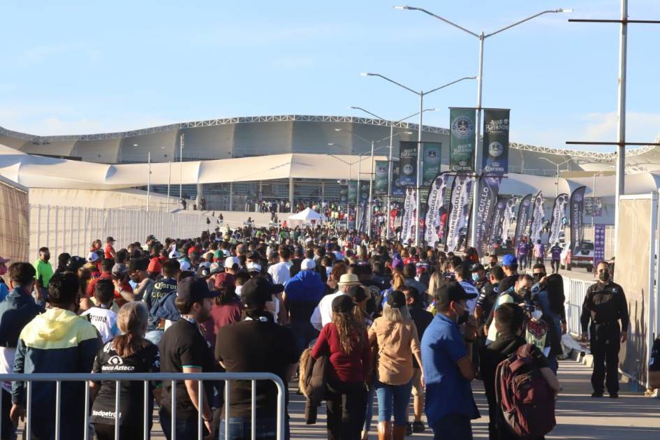 Conforme fueron transcurriendo los minutos los accesos se empezaron a poblar cada mes más; sin embargo, las personas respetaron los protocolos para ingresar con mucha calma al estadio.