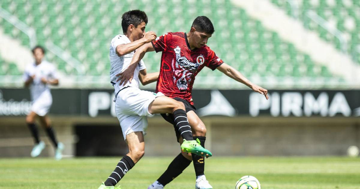 Los Xoloitzcuintles buscaron el arco y por medio del juvenil rojinegro Daniel Vázquez encontraron el primer gol que acercó a la jauría al marcador con un remate dentro del área chica.