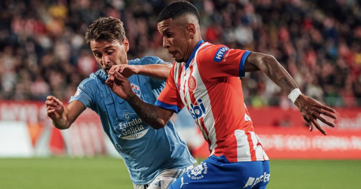 GERONA._ El Girona se impuso este viernes al Celta de Vigo en Montilivi por un ajustado 1-0 gracias a un gol de Yangel Herrera en el minuto 91 para situarse líder en solitario de LaLiga con 28 puntos de 33 posibles a la espera del partido entre el Barcelona y el Real Madrid del sábado.