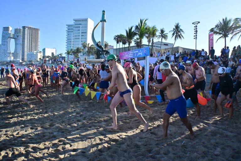 MAZATLÁN._ Con el clima a favor y una atmósfera de alegría, se llevó a cabo la Cuarta Puntuable de Aguas Abiertas, realizada frente al Monumento al Pescador.