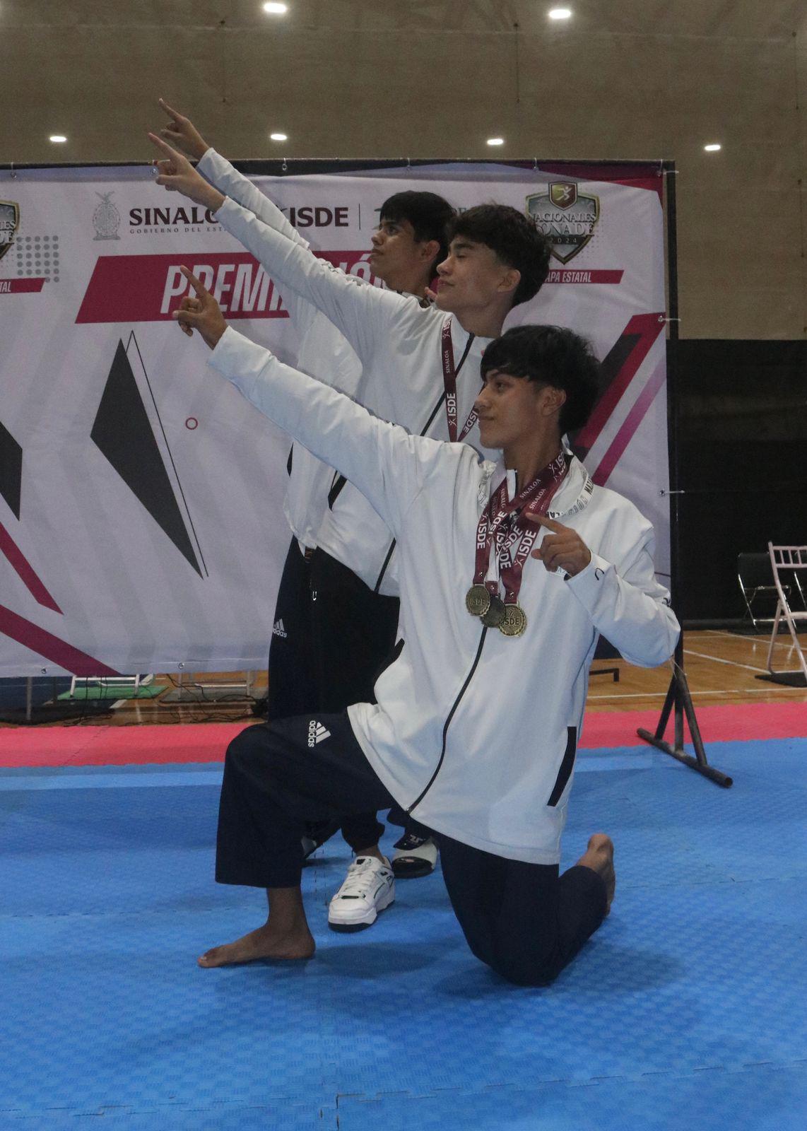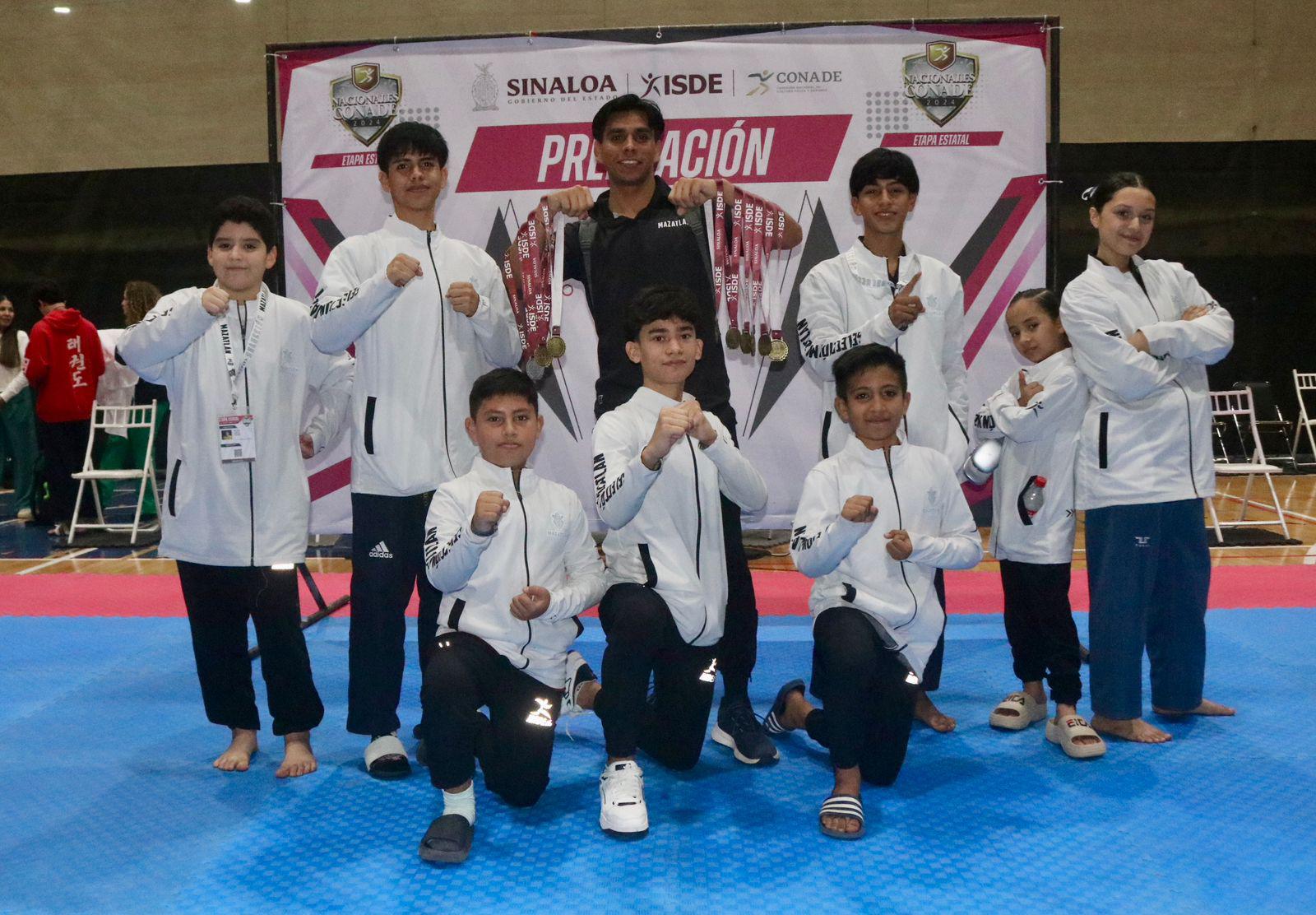 CULIACÁN._ La selección de taekwondo de Mazatlán abrió su participación en el estatal de los Juegos Nacionales Conade 2024 con cinco medallas de oro, así como una plata, en la competencia de poomsae, desde el Gimnasio María del Rosario Espinoza, en el Centro de Alto Rendimiento de Culiacán.