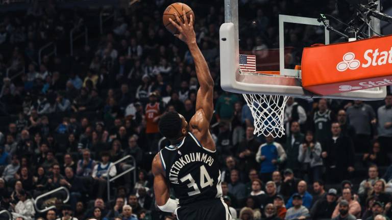 LAS VEGAS._ El griego Giannis Antetokounmpo, con un doble doble de 32 puntos y 13 rebotes, llevó de la mano este sábado a los Milwaukee Bucks hacia un sufrido triunfo por 110-102 contra los Atlanta Hawks en la T-Mobile Arena de Las Vegas y envió a su equipo a la final de la NBA Cup.
