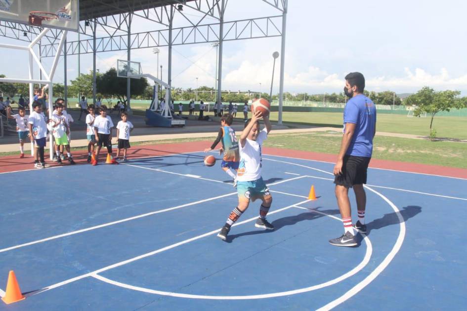 MAZATLÁN._ Cerca de 50 alumnos formaron parte de la apertura del Campamento de Verano Academia Delfines de Mazatlán 2021, en las instalaciones de la Unidad Deportiva Benito Juárez.