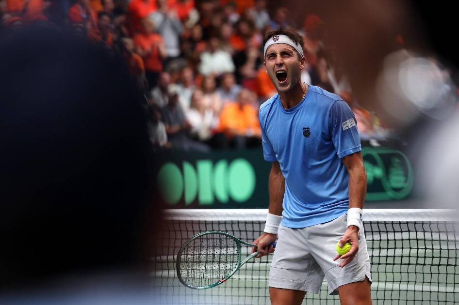 Tomas Martín Etcheverry y Francisco Cerúndolo pusieron al combinado argentino a orillas de la fase final al ganar en el Martiniplaza de Groningen, sobre pista dura, al cuadro anfitrión, Países Bajos. El combinado europeo echó en falta a su principal raqueta, Tallon Griekspoor pero Argentina se mostró superior en ambos enfrentamientos.