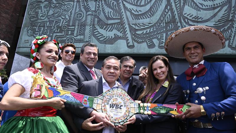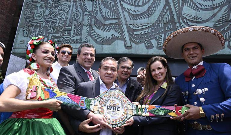 MÉXICO._ Teniendo como escenario el Frontispicio de la Cámara de Diputados, se develó el cinturón conmemorativo que se llevará el ganador de Saúl Álvarez vs. John Ryder, el próximo 6 de mayo.